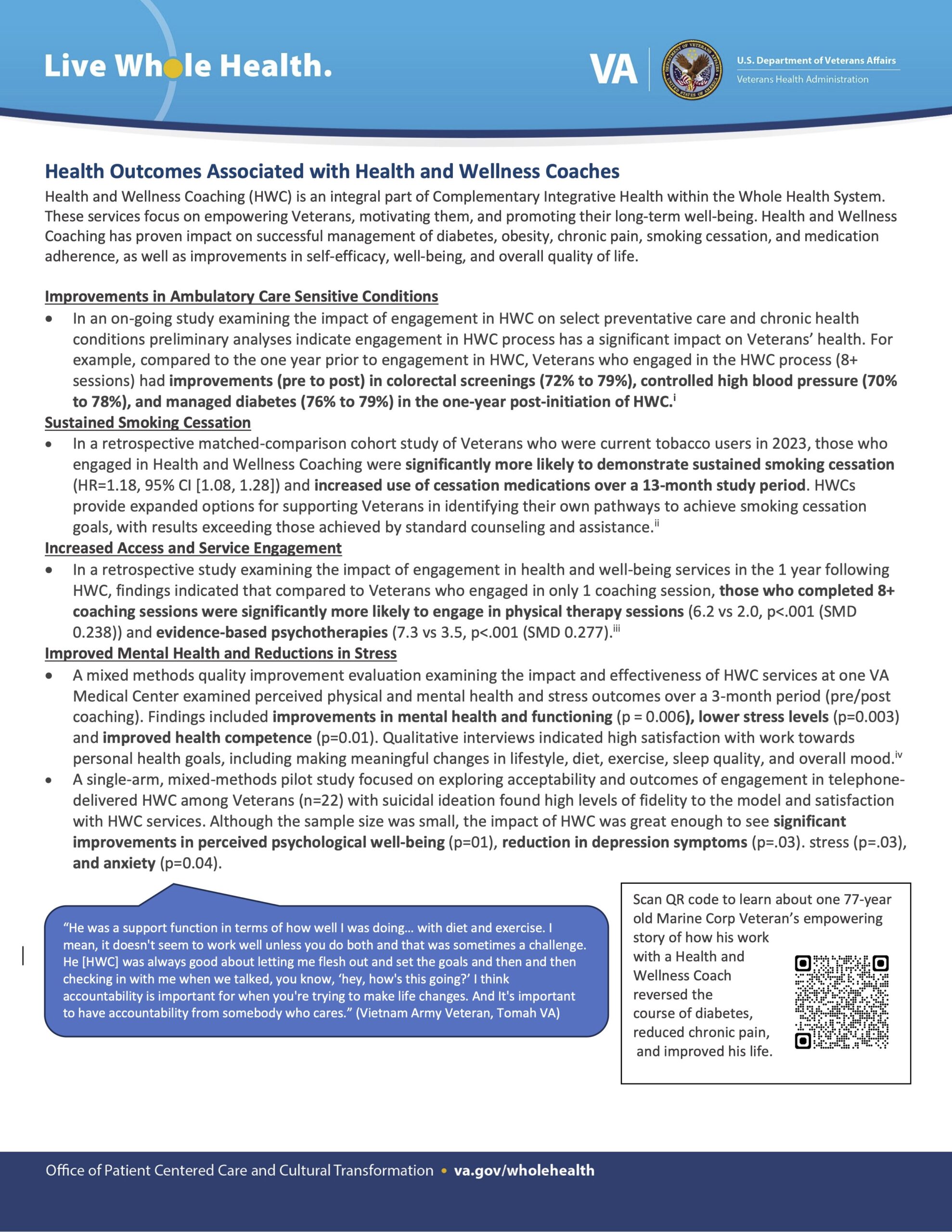 The VA has been using health coaches for awhile now, with a lot of success. If you’re interested in the studies they’ve been doing, keep reading.